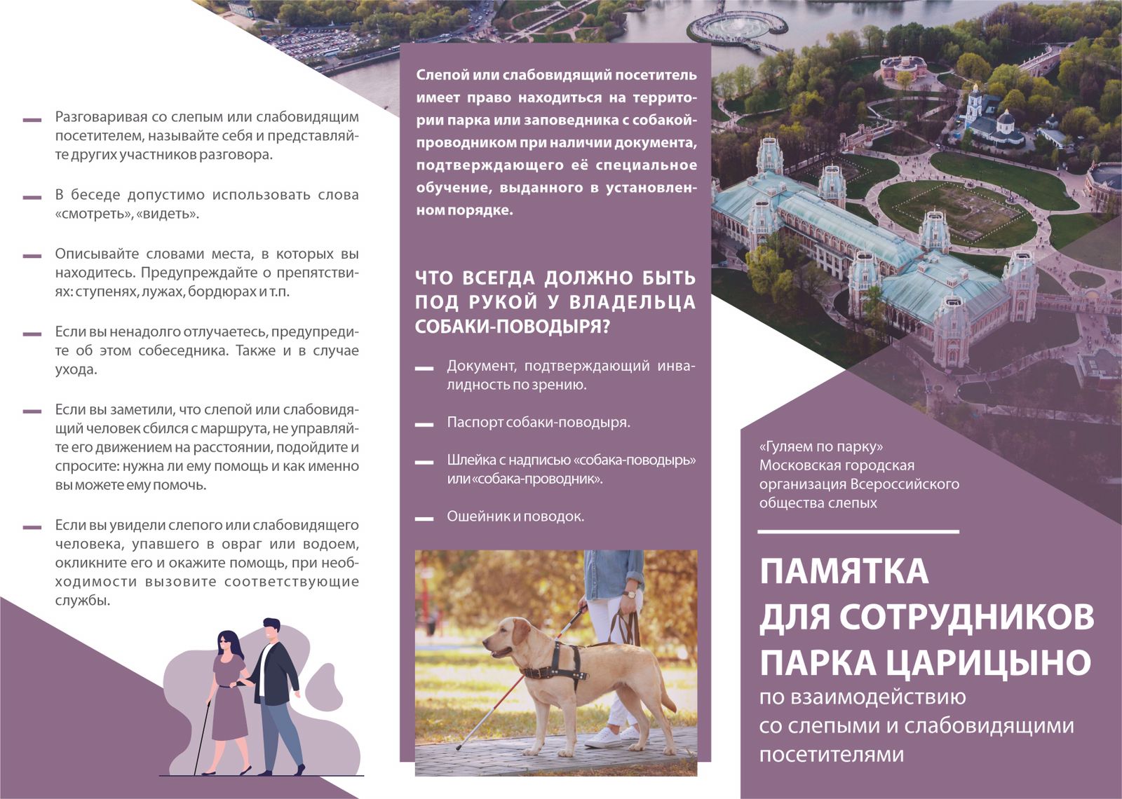 Памятка для сотрудников парка Царицыно по взаимодействию со слепыми и слабовидящими посетителями