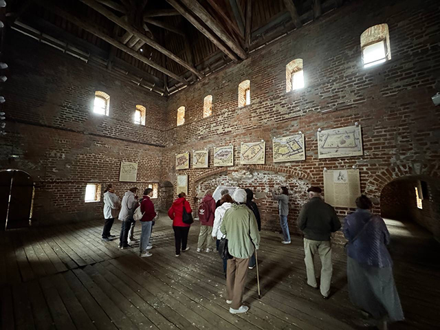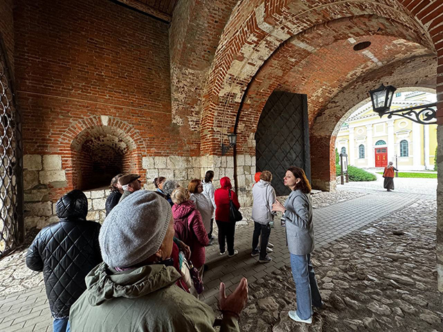 Первым пунктом маршрута стал Зарайский Кремль — выдающийся памятник оборонного зодчества, возведённый по указу Василия III в 1528–1531 годах. Экскурсовод Ольга Николаевна Грачева познакомила гостей с богатой историей крепости и поделилась интересными фактами. Например, именно Зарайский Кремль служил важным форпостом на южных подступах к Москве, защищая страну от крымских набегов.