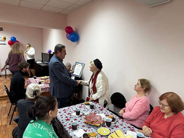 С теплыми словами и пожеланиями выступила Смирнова Светлана Алексеевна, заведующая методико-библиографическим отделом библиотеки им. Тютчева № 148. Она отметила значительный вклад членов ВОС в культурную и общественную жизнь района.