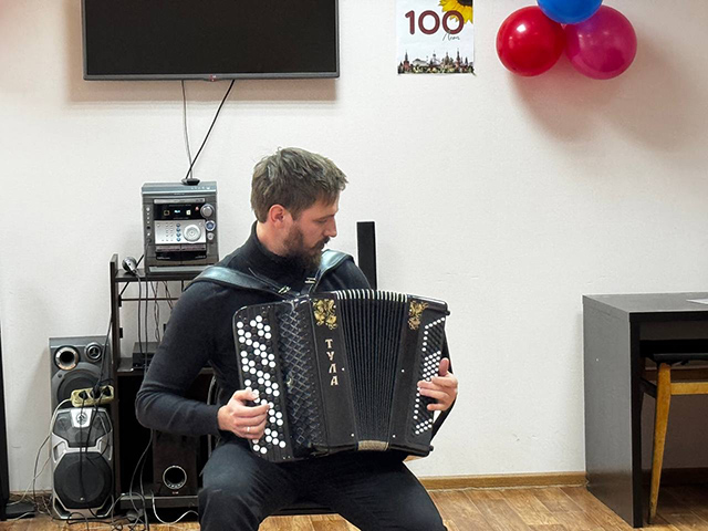 Поздравления прозвучали также от ведущих специалистов МГО ВОС Наталии Ивановны Льговской и Ольги Викторовны Конопатовой, которые рассказали о многолетней истории общества слепых, его огромной работе и значении для каждого, кто связан с этой организацией. В завершение своего выступления Наталия Ивановна вручила нашей местной организации ценный подарок — баян, на котором сразу же прозвучали музыкальные произведения в исполнении руководителя хора «Русская песня» Игнатьева Андрея Владимировича.
