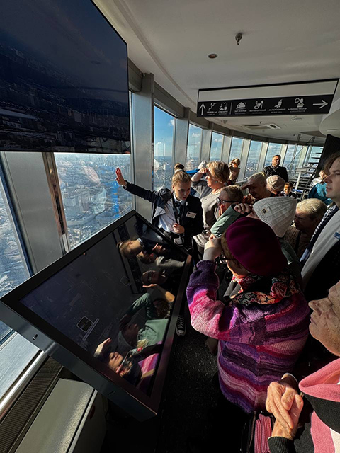После познавательной экскурсии участники поднялись на смотровую площадку, где открывались захватывающие виды на Москву. С высоты птичьего полёта можно было увидеть ВДНХ, Москва-Сити, храм Христа Спасителя и другие знаковые места столицы. Особенно впечатлила стеклянная площадка, позволяющая почувствовать всю высоту сооружения.