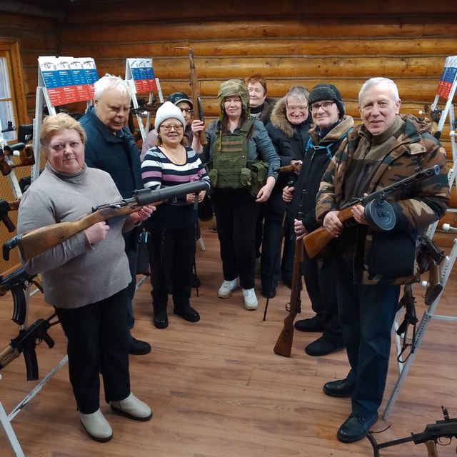 Послевоенный период представлен в первую очередь изделиями знаменитого конструктора Михаила Тимофеевича Калашникова, начиная от первых вариантов и заканчивая современными образцами, состоящими на вооружении Российской армии. Благодарим экскурсовода Романа за интересный и познавательный рассказ об истории оружия. Участникам экскурсии удалось и примерить, и подержать в руках некоторые экспонаты выставки, что вызвало общий азарт и восторг.