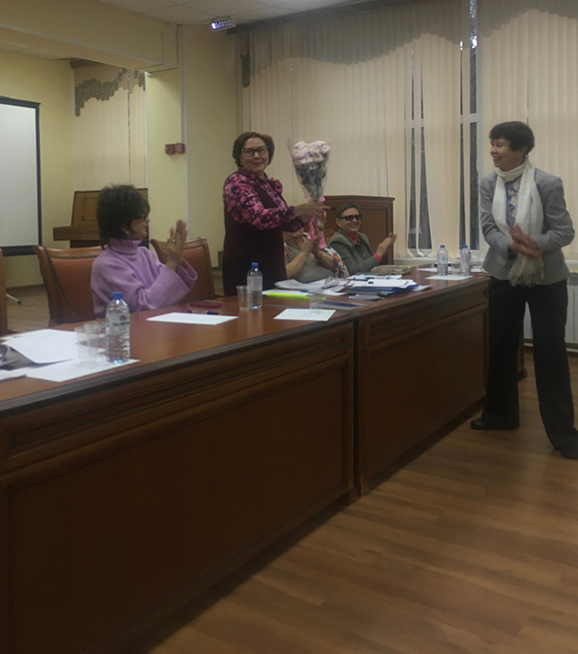 Ведущий специалист МГО ВОС Наталия Ивановна Льговская в своем выступлении отметила успешную работу председателя МО Е.Н. Чалкиной в отчетном периоде, сказала много теплых слов в адрес «академиков».