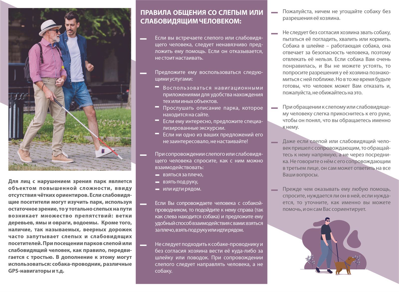 Памятка для сотрудников парка Царицыно по взаимодействию со слепыми и слабовидящими посетителями