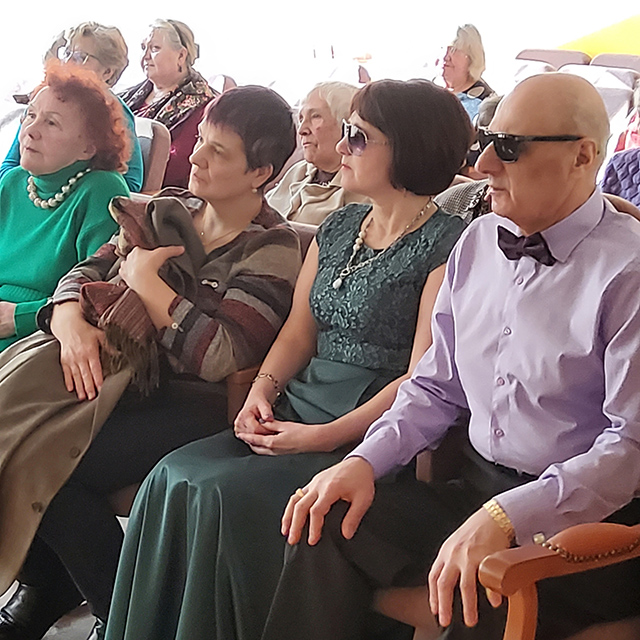 В концертной программе приняли участие победители участники Всероссийских, городских конкурсов, фестивалей ВОС: Елена Вострикова, Нодар Назлоян, Вера Ивановна Рогожина, Наталья Шахматова. В программе прозвучали стихи: Е. Евтушенко, А. Баранова, М. Цветаевой. Наталья Шахматова сольно и дружно со зрителями вокально красиво исполняла песни военных, советских лет.