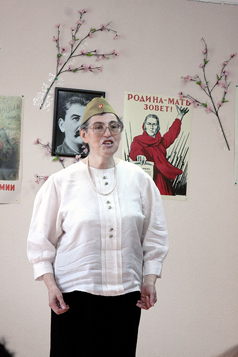 Прозвучали песни, стихи на военную тему, пара Алмазова Галина Петровна и Сазонов Валентин Андреевич исполнили танцевальную композицию «Катюша».