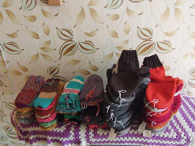 Алла Владимировна Забодаева на постоянной основе вяжет теплые носки для бойцов и носки на культи раненым в госпиталь, передает сладости и консервы.