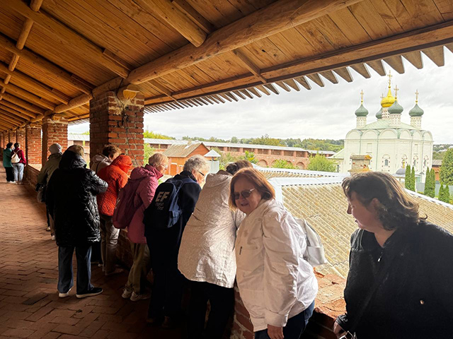 Первым пунктом маршрута стал Зарайский Кремль — выдающийся памятник оборонного зодчества, возведённый по указу Василия III в 1528–1531 годах. Экскурсовод Ольга Николаевна Грачева познакомила гостей с богатой историей крепости и поделилась интересными фактами. Например, именно Зарайский Кремль служил важным форпостом на южных подступах к Москве, защищая страну от крымских набегов.