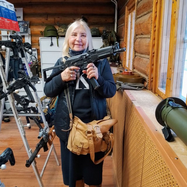 Послевоенный период представлен в первую очередь изделиями знаменитого конструктора Михаила Тимофеевича Калашникова, начиная от первых вариантов и заканчивая современными образцами, состоящими на вооружении Российской армии. Благодарим экскурсовода Романа за интересный и познавательный рассказ об истории оружия. Участникам экскурсии удалось и примерить, и подержать в руках некоторые экспонаты выставки, что вызвало общий азарт и восторг.