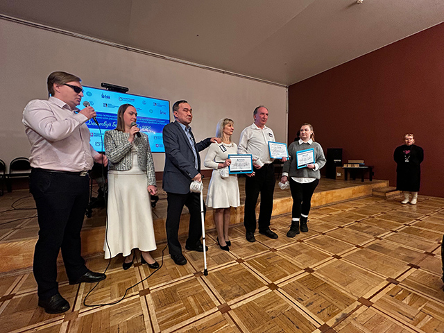 Официальные лица поздравили участников с успешным окончанием проектов, поблагодарили за профессиональную работу и неравнодушие к таким значимым проблемам инвалидов по зрению, которые затронули команды в ходе реализации проектов.