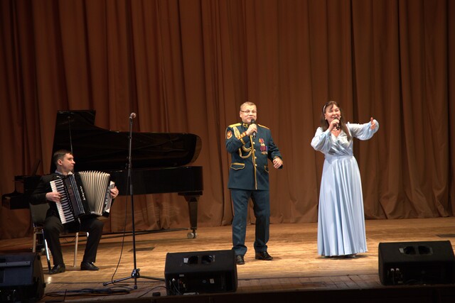 лауреаты всероссийских и международных конкурсов, заслуженный артист России, солист ансамбля песни и пляски Национальной гвардии президента РФ Алексей Волжанин и солистка Калужской государственной филармонии Лариса Волжанина